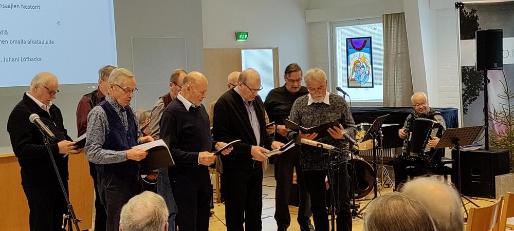 Vaasan Nestorit osallistivat valtakunnalliseen Nestorit-juhlaan Ylivieskassa isolla joukolla 4.11.2025. Mukana oli 16 Nestoria (Mikko puuttuu kuvasta).