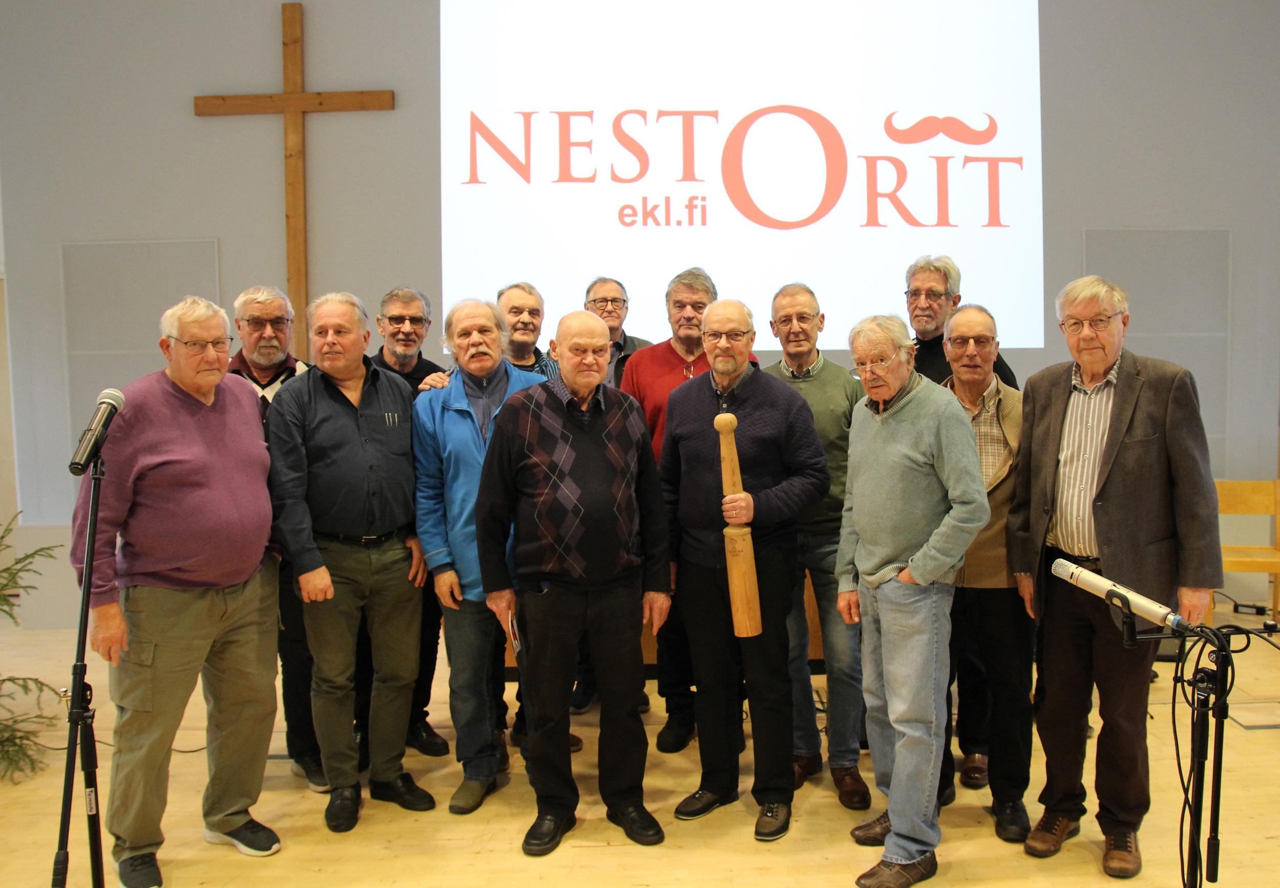 Vaasan Nestorit osallistivat valtakunnalliseen Nestorit-juhlaan Ylivieskassa isolla joukolla 4.11.2025. Mukana oli 16 Nestoria (Mikko puuttuu kuvasta).