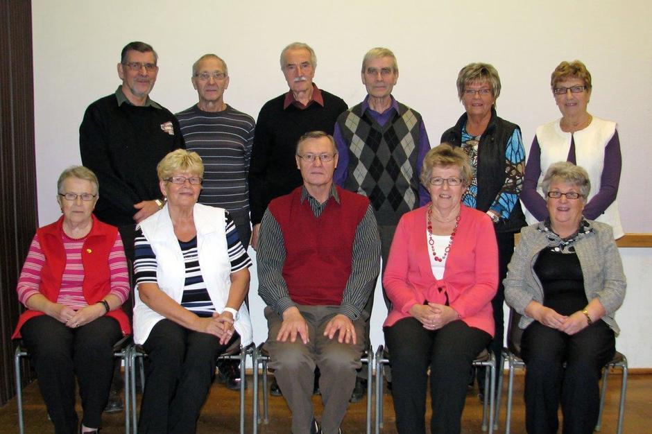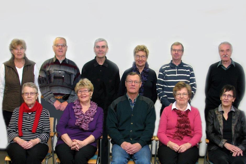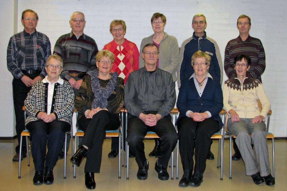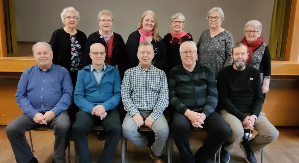 Vuoden 2025 hallitus: Alarivi vas. Seppo Lautamäki, tiedottaja varapj Tuomas Perkiö, puh.joht. Heikki Keränen, äänentoistovast. Mikko Vähä-Koivisto ja varajäs. Eero Sara . Ylärivi vas. sihteeri Anneli Mäenpää, pääemäntä Irma Tuomaala, matkailun vetäjä Kirsti Ikola, Ulla Weterlund, jäsenasiainhoitaja Maarit Kosonen ja taloudenhoitaja Sinikka Hakomäki.