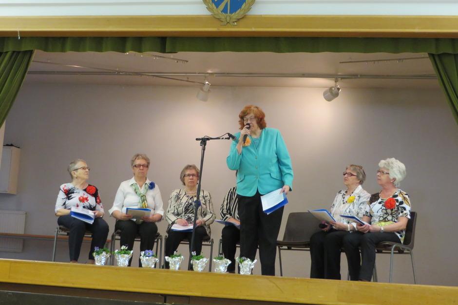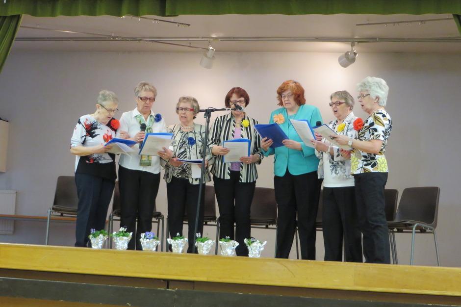 2015-02-26 runoryhmä esiintyi Kalevalanpäivän teemalla. Mukana vas. Sisko Eila, Sinikka, Leena, Maija ja Oili.