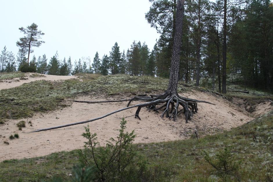 Hiekka valunut juurilta pois