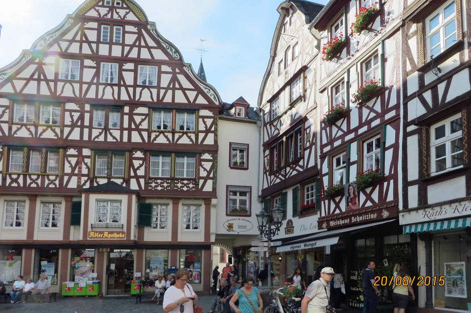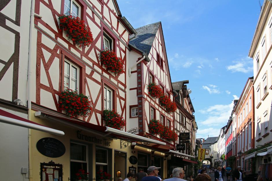 Kauniita taloja Bernkastel-Kues'in kylässä Moselin varrella