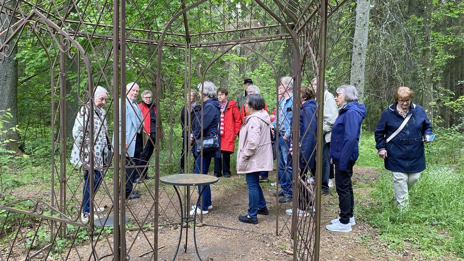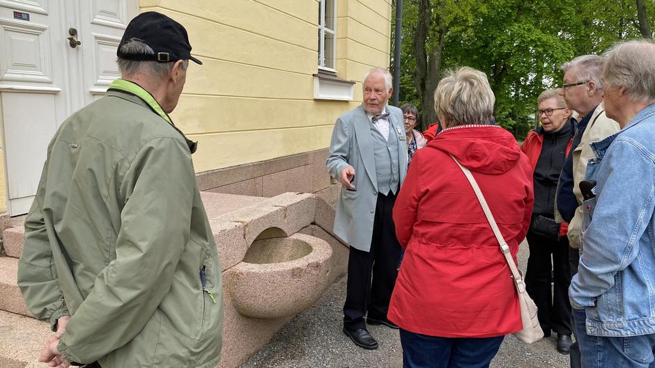Vuojoen kartanon oppaita vastaanottamassa vieraita