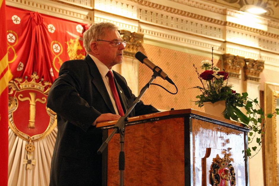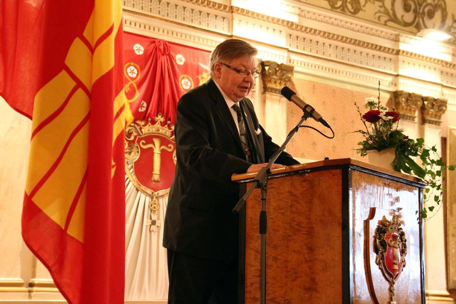Kaupunginjohtaja Tomas Häyry tuo kaupungin onnittelut juhlivalle yhdistykselle.
