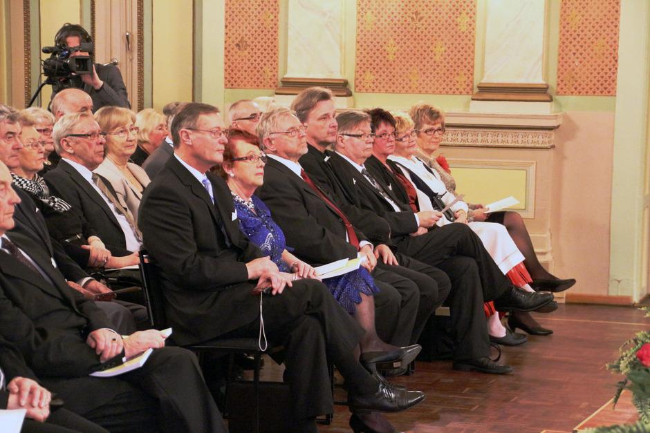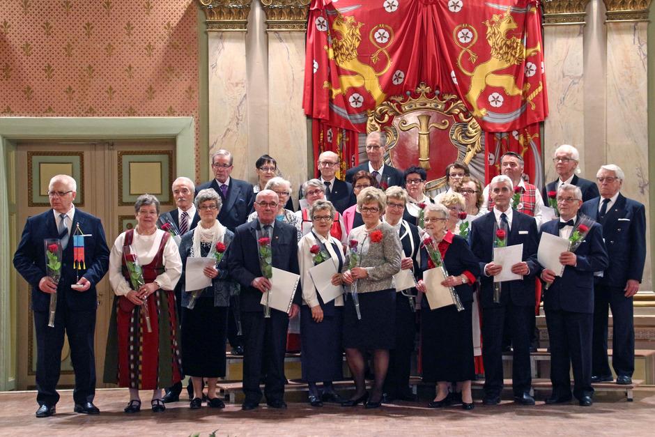 Viirin, kultaisten ja hopeaisten ansiomerkkien saajat.