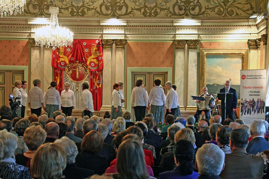 Lopuksi yhteislauluna kuultiin "Eläkkeensaajien laulu".