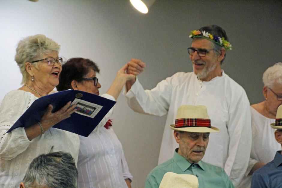 Muistinvirkistämiskerhon Ulla-Maija koetteli kerholaisten laulunsanojen muistamisia
