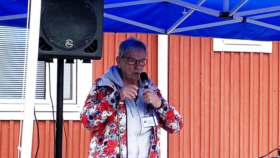 Pihaohjelman juontaja Ritva-Leena Heikkinen Lapuan Es.