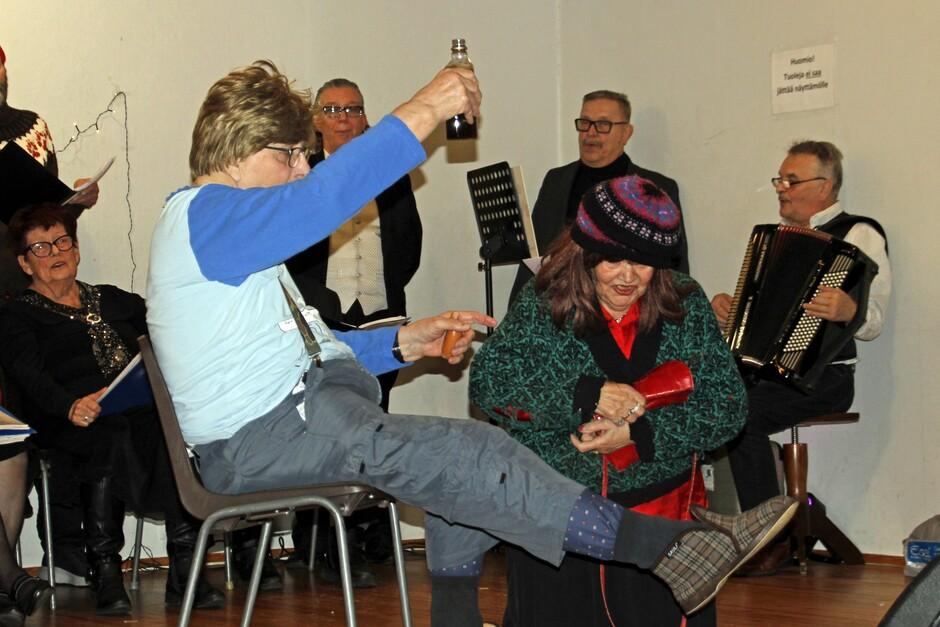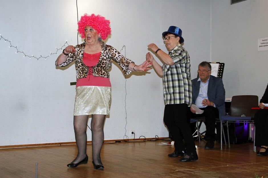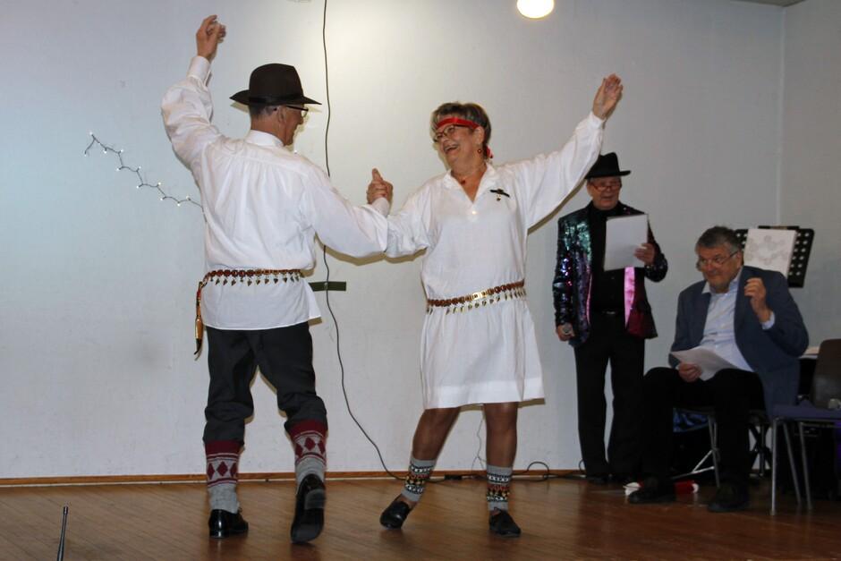 Tanssii tätien kanssa tanssipari Sinikka ja Anneli