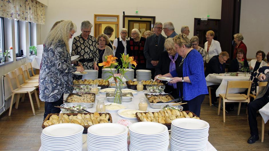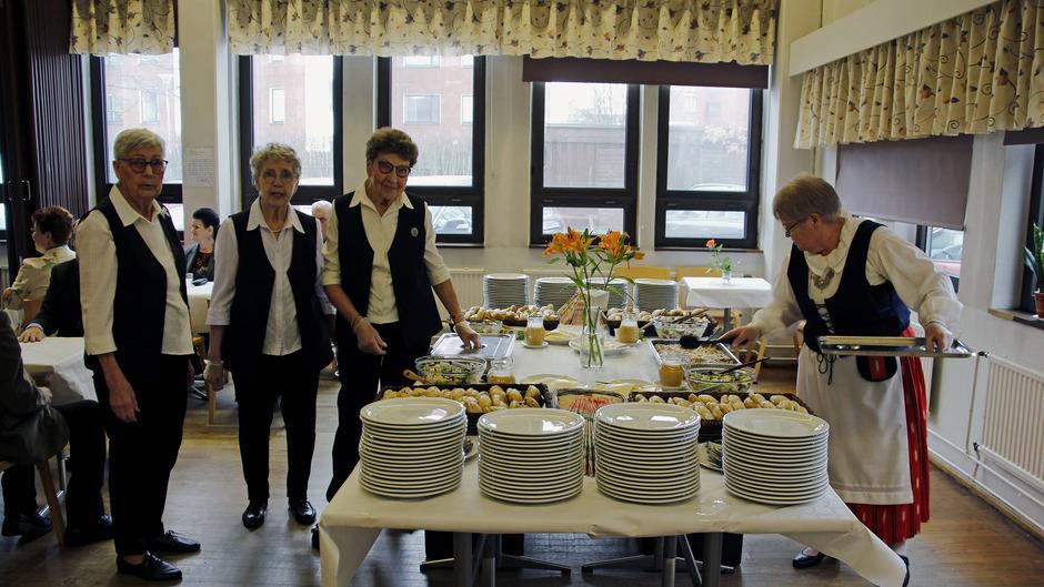 Pienellä tauolla emännät Liisa Rinne, Kaisu Luhtala, Liisa Palokangas ja Irma Tuomaala olivat kattaneet ruokapöydän herkullisella ruualla ja jälkiruokana tarjottiin kahvia ja leivokset.