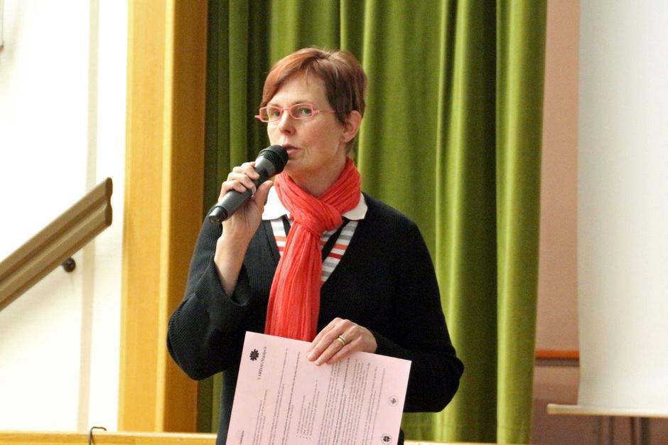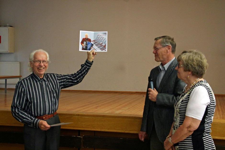 2014-11-20 suurarpajaissa oli niin paljon arpalippuja, ettei arpakori riittänyt vaan tarvittiin saavi. Pauli onnettarena ja Ulla-Maija huutamassa nimiä.