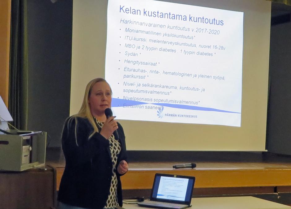 2019-05-16 Härmän Kuntokeskuksen Nina Karlsberg kertomassa kuntoutuksista ja tuetuista lomista.