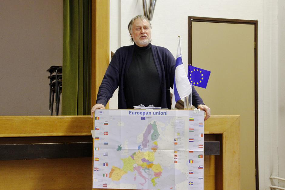 2023-05-04 Antti Koski piti esitelmän Euroopan Unionista ja jakoi paljon tutkittavaa matriaalia