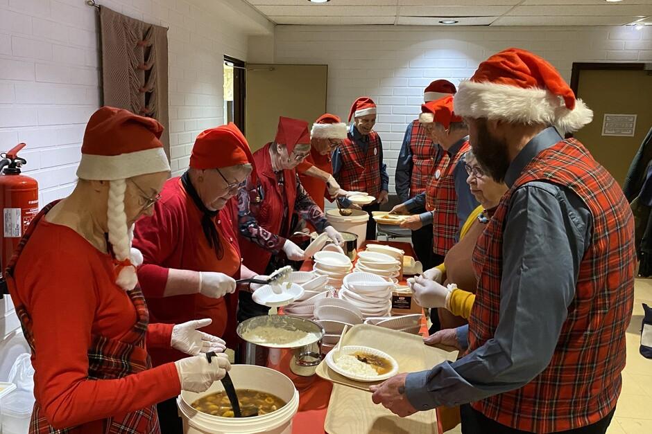 Kerhovieraat odottavat puurotarjoilua, jonka olivat keittäneet Martti Suomi ja Pauli Karhu