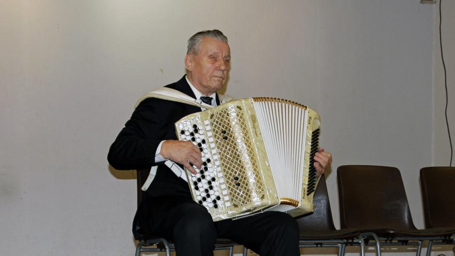 Lopuksi vielä Erkki Vainionpää soitti hanurilla kappaleen 'Sinivalkoinen soitin'