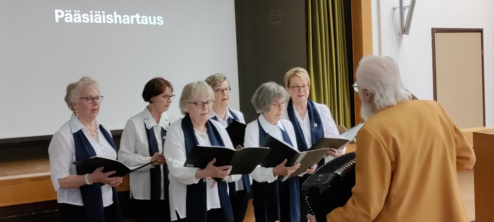 Kiirastorstaina hartaustilaisuus, Kuoromme esiintyi, virsiä säesti kanttori Tarja Viitanen ja hartauspuheen piti seurakuntapastori Ville Suomela.
